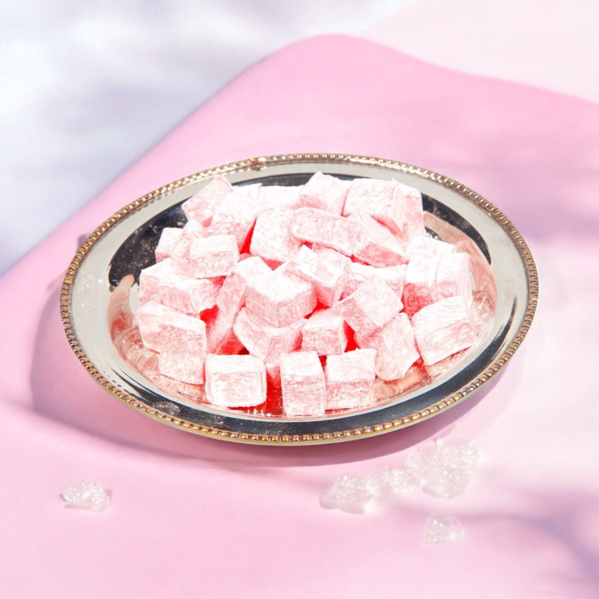 Şener Lokum’un 3 kg güllü çeşidi, geleneksel lokum tadına benzersiz güllerin eşsiz aromasını ekler